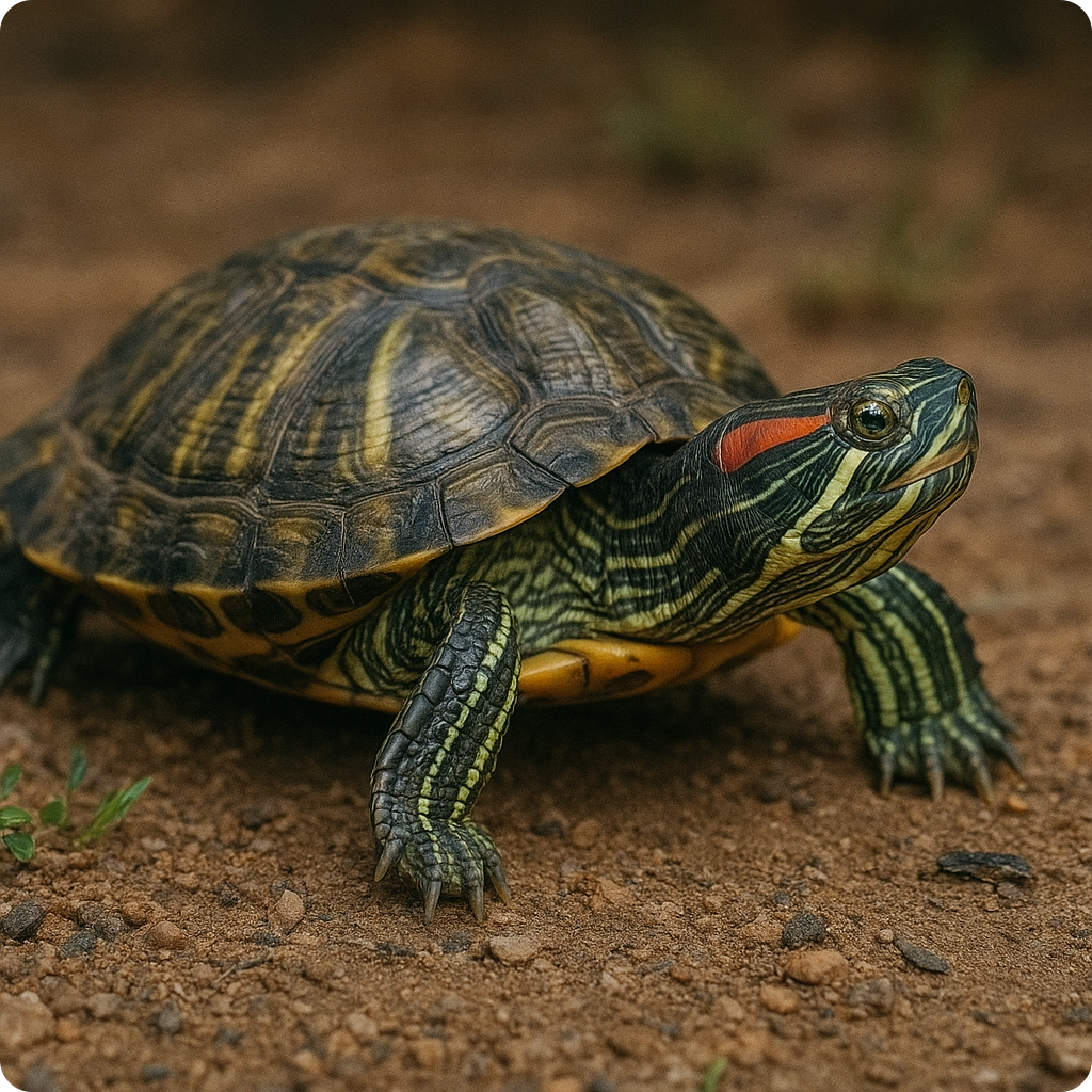 붉은귀거북(Red-eared Slider)은 가장 대중적인 수생거북이로, 비교적 가격이 저렴하고 구하기 쉽습니다.